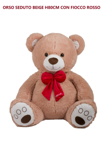 ORSO SEDUTO BEIGE H80CM CON FIOCCO ROSSO DECAR